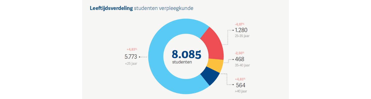 Dit academiejaar zijn 8.085 studenten ingeschreven voor de bacheloropleiding verpleegkunde, een stijging van 2,71 procent ten opzichte van 2024-2025. Die verhoging situeert zich vooral bij de generatiestudenten. Daar zien we maar liefst 14,16 procent meer studenten dan vorig academiejaar. Ook bij de studiestarters zien we 8,93 procent meer inschrijvingen. Positieve cijfers, dus. Dat vindt ook Vlaams Zorg- en Welzijnsambassadeur Candice De Windt.